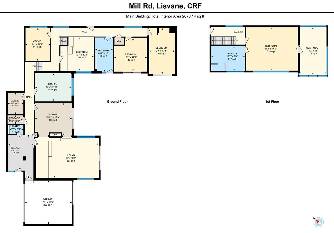 GF: Entrance hallway, ground floor WC, Living room, dining room, sitting room, utility room, kitchen, WC, office, bathroom, 3 bedrooms