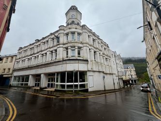 Extensive mixed-use building in the centre of Abertillery comprising a ground floor former supermarket with associated stores and offices to the lower ground floor. The upper floors are arranged as 10 apartments in generally good order but requiring repair and improvement in some parts.