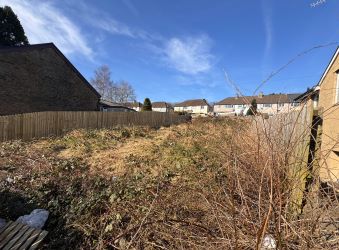 A parcel of freehold vacant land situated in the residential village of Pontllanfraith, extending to approximately 0.03 of an acre. The site is currently overgrown with vegetation, including bushes, brambles, and scattered debris, presenting an opportunity for clearance and redevelopment. The land slopes gently upwards from the road towards the rear, where it adjoins the gardens of semi-detached and terraced houses on an elevated level. It features a wooden panel fence along the front boundary with stone pillars directly from Blackwood Road. The plot appears rectangular in shape, with potential for residential development, amenity use, or other purposes, subject to obtaining relevant planning permissions from Caerphilly County Borough Council.