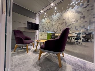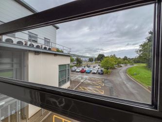 Ty Afon is a prominent three-storey office building overlooking the Bedwas Roundabout. Each of the three floors are predominately open plan, allowing for internal layout flexibility. There are additional private office spaces located on each floor. There is a central atrium, which provides for natural lighting. There is a reception area located at the front entrance of the building. Stairs and passenger lifts are located at either end of the building.