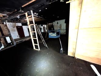 Internally, the property offers large, open plan floor plates across two levels. Both floors retain elements of its former use as a nightclub, including a prominent bar area with decorative diamond-patterned detailing, a raised stage area, and a large dancefloor featuring original parquet wood flooring. The first floor provides additional wide open floor space with suspended ceilings and partitioned areas, previously used for further lounge/bar areas and storage.