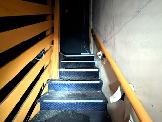 Internally, the property offers large, open plan floor plates across two levels. Both floors retain elements of its former use as a nightclub, including a prominent bar area with decorative diamond-patterned detailing, a raised stage area, and a large dancefloor featuring original parquet wood flooring. The first floor provides additional wide open floor space with suspended ceilings and partitioned areas, previously used for further lounge/bar areas and storage.