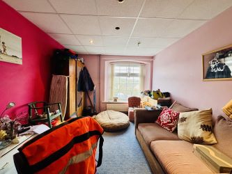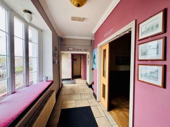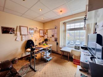 To the upper floors is a 3-bedroom duplex flat (one bedroom currently used as an office), comprising living room, bathroom and private rear garden. The accommodation is self-contained and suitable for owner-occupation, staff housing, or separate letting subject to necessary consent. Two adequate storage rooms are located at either end of the building and could potentially be converted into additional rooms or expanded facilities.